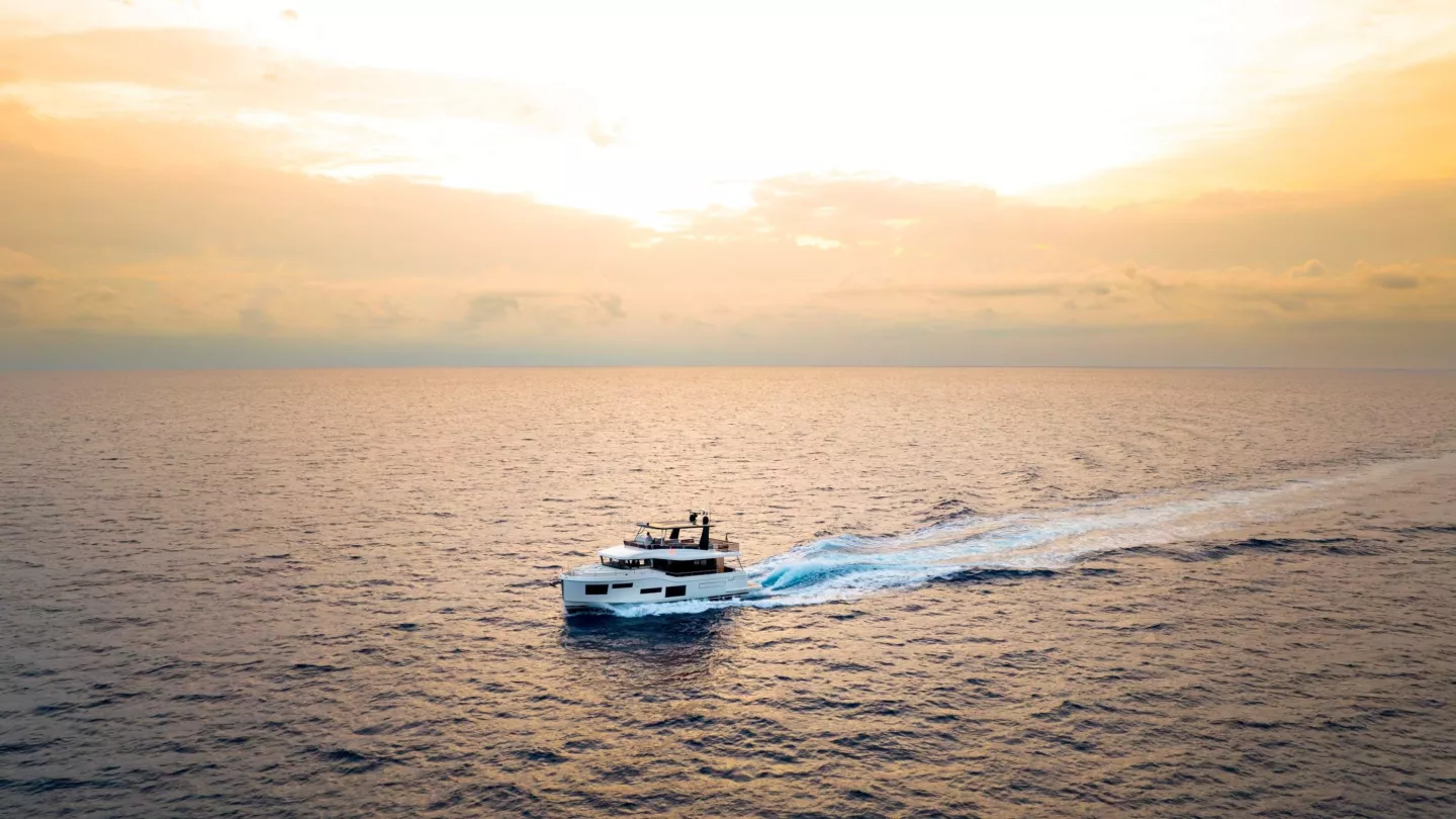 Die klare Linienführung und der kraftvolle Verdränger-Rumpf verleihen der Yacht eine zeitlose Präsenz. Entwickelt in Zusammenarbeit mit MICAD Naval Architects, überzeugt die Konstruktion durch hohe Effizienz und eine beeindruckende Reichweite von bis zu 1.000 Seemeilen bei 9 Knoten – inklusive Reserve. Ergänzt wird das Konzept durch flexible Außenbereiche, wie eine optionale modulare Flybridge oder zusätzliche Outdoor-Features, die jeden Aufenthalt an Deck bereichern – sowohl vor Anker als auch während der Fahrt.